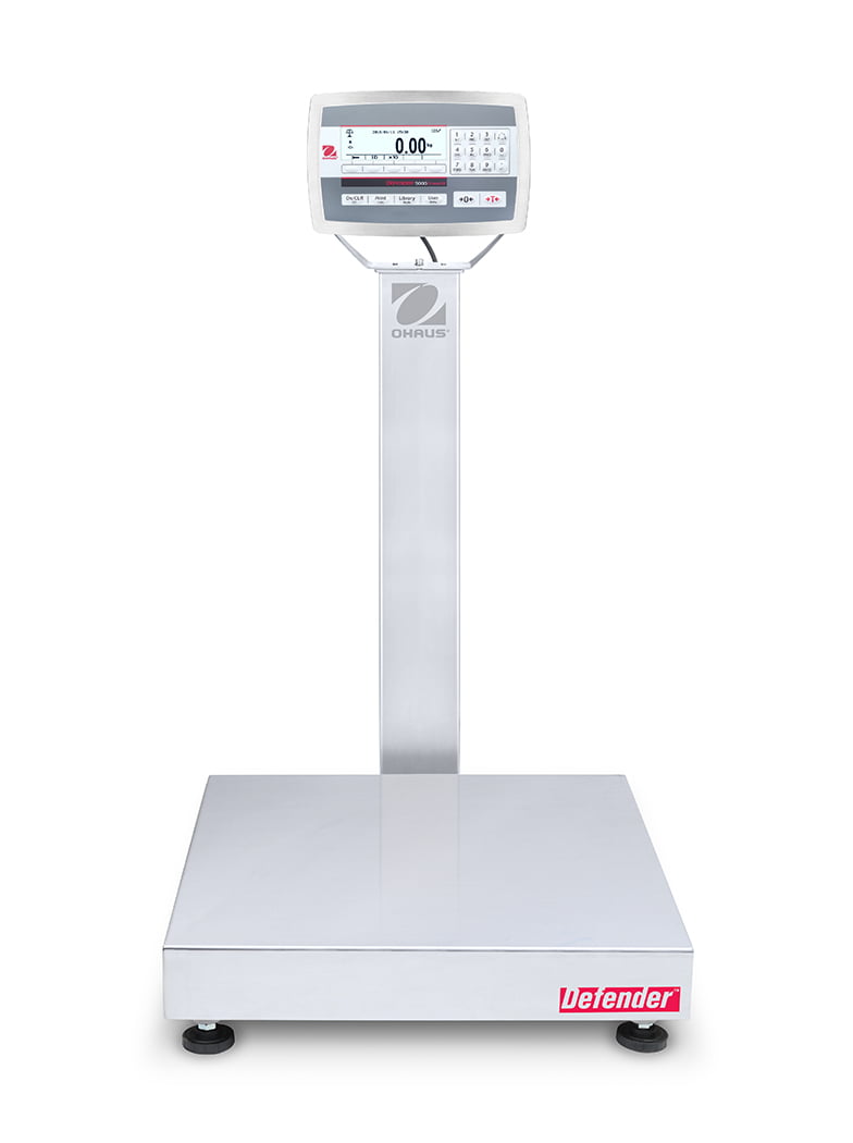 IP68 stainless steel indicator, 304-grade stainless steel platform with sand gray powder-coated steel frame, IP67 aluminium load cell, non-slip adjustable rubber feet